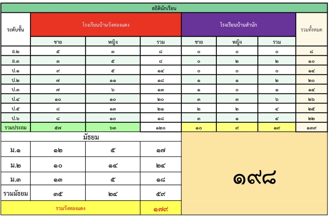 - โรงเรียนบ้านวังทองแดงจำนวนนักเรรียนทั้งหมด ๑๗๙ คน