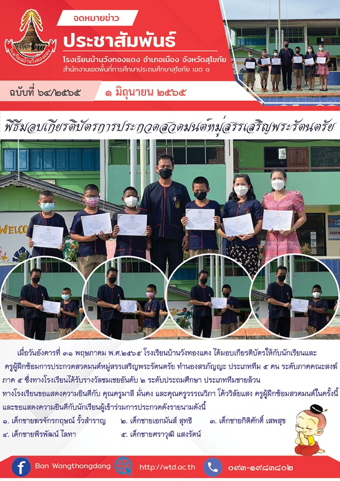 พิธีมอบเกียรติบัตรการประกวดสวดมนต์หมู่สรรเสริญรัตนตรัย ทำนองสรภัญญะ